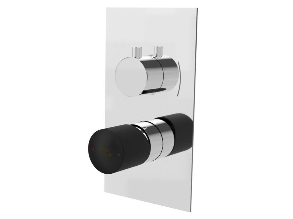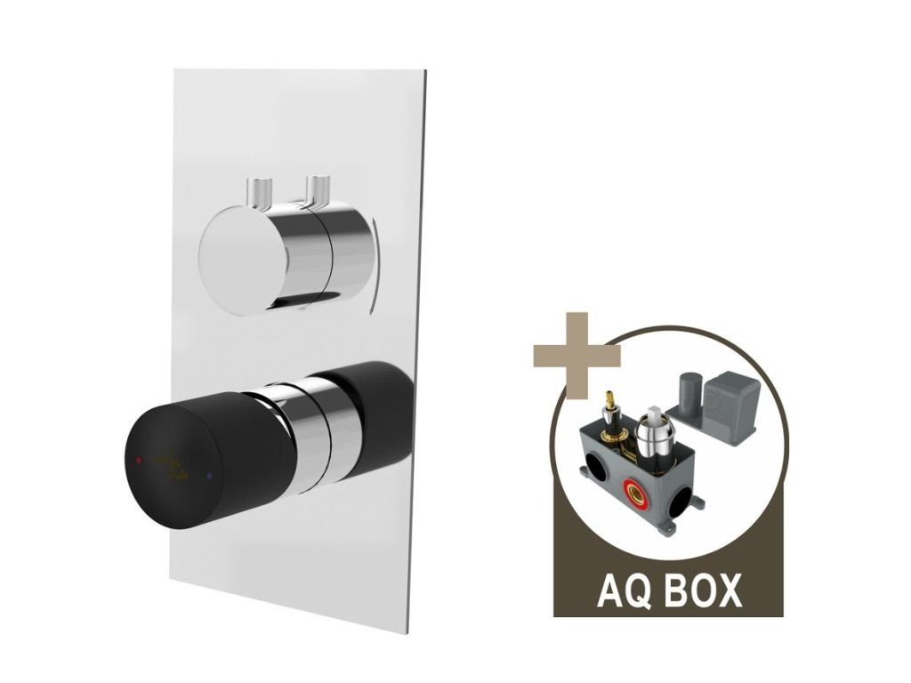batéria AQS sprchová podomietková pre 2 odberné miesta, s AQ-boxom a s keramickým prepínačom, PLATFORM ROUND ČIERNA-CHRÓM