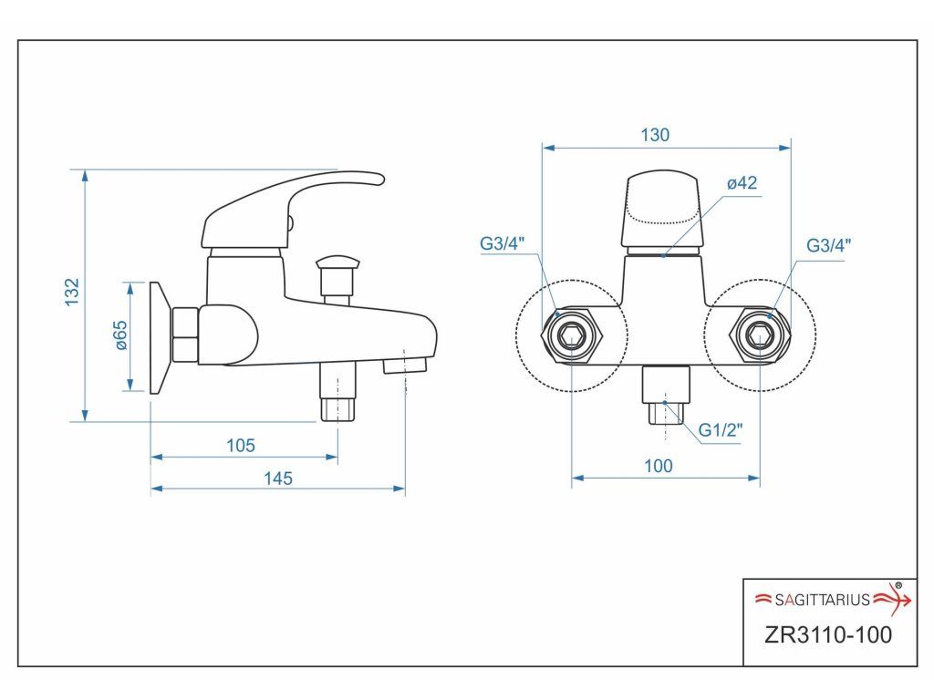 batéria vaňová stenová bez príslušenstva, rozstup 100mm, ZORA