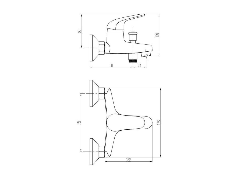 batéria vaňová stenová bez príslušenstva, rozstup 150mm, PLUTO