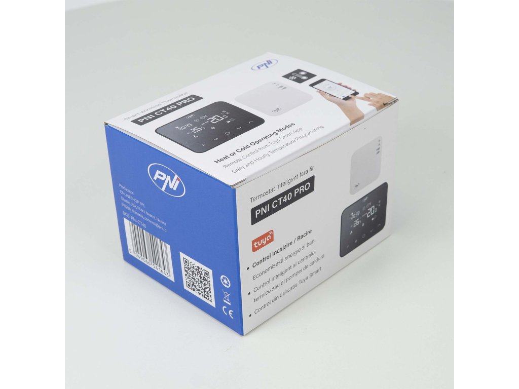 Bezdrôtový inteligentný termostat PNI CT40 PRO s WiFi, pre vykurovacie systémy, režim vykurovania a chladenia, minimálna hysterézia 0,1 °C, 4 denné programy, manuálny režim, ekonomický režim, ovládani