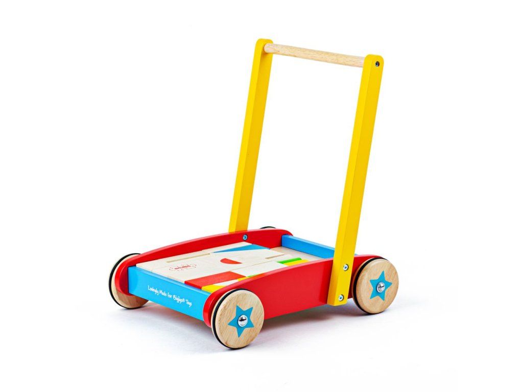 Bigjigs Baby Drevené kocky vo vozíku