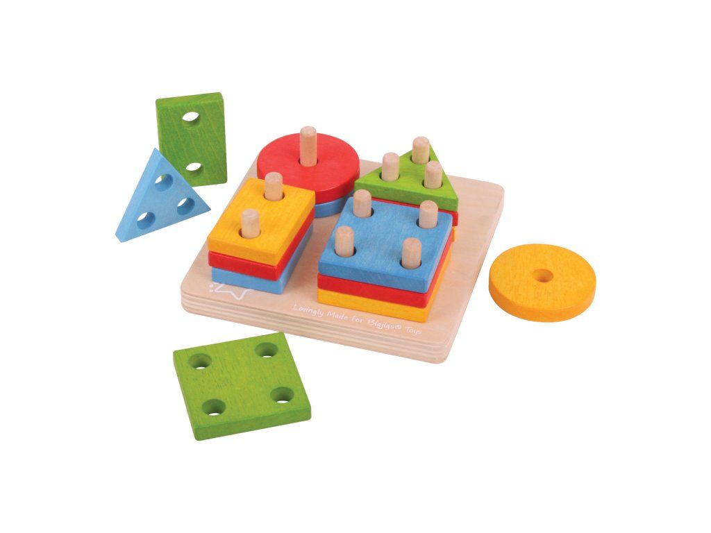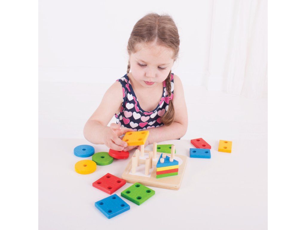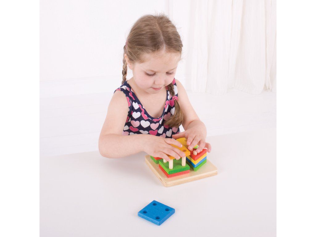 Bigjigs Baby Nasadzovanie farebných tvarov na tyče