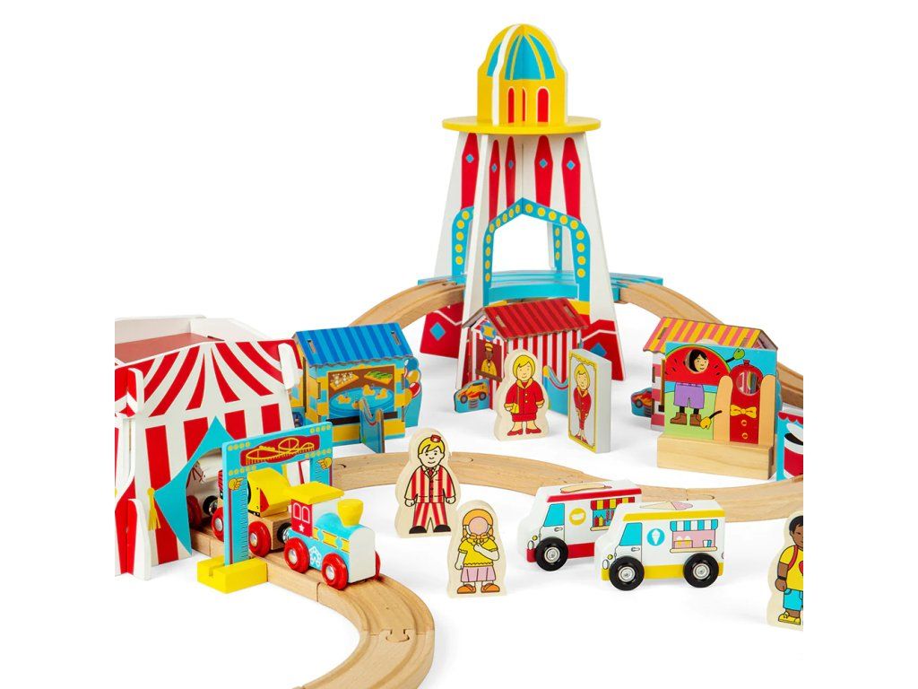 Bigjigs Rail Drevená vláčikodráha zábavná púť 54 dielov