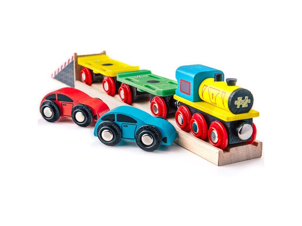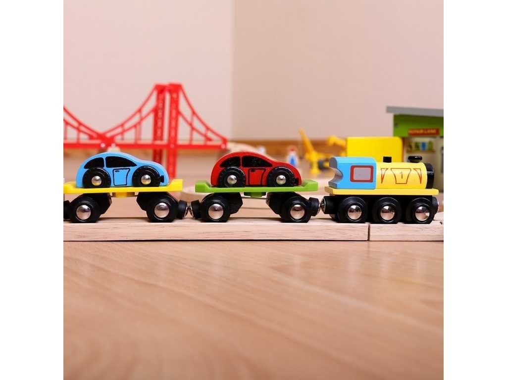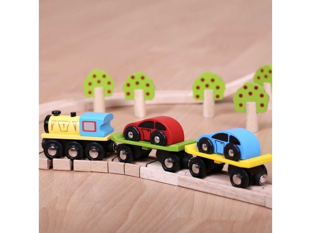 Bigjigs Rail Nákladný vlak s autami a koľajami