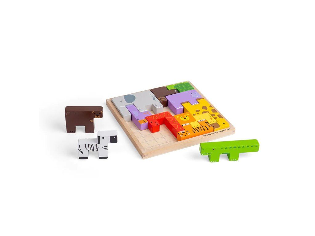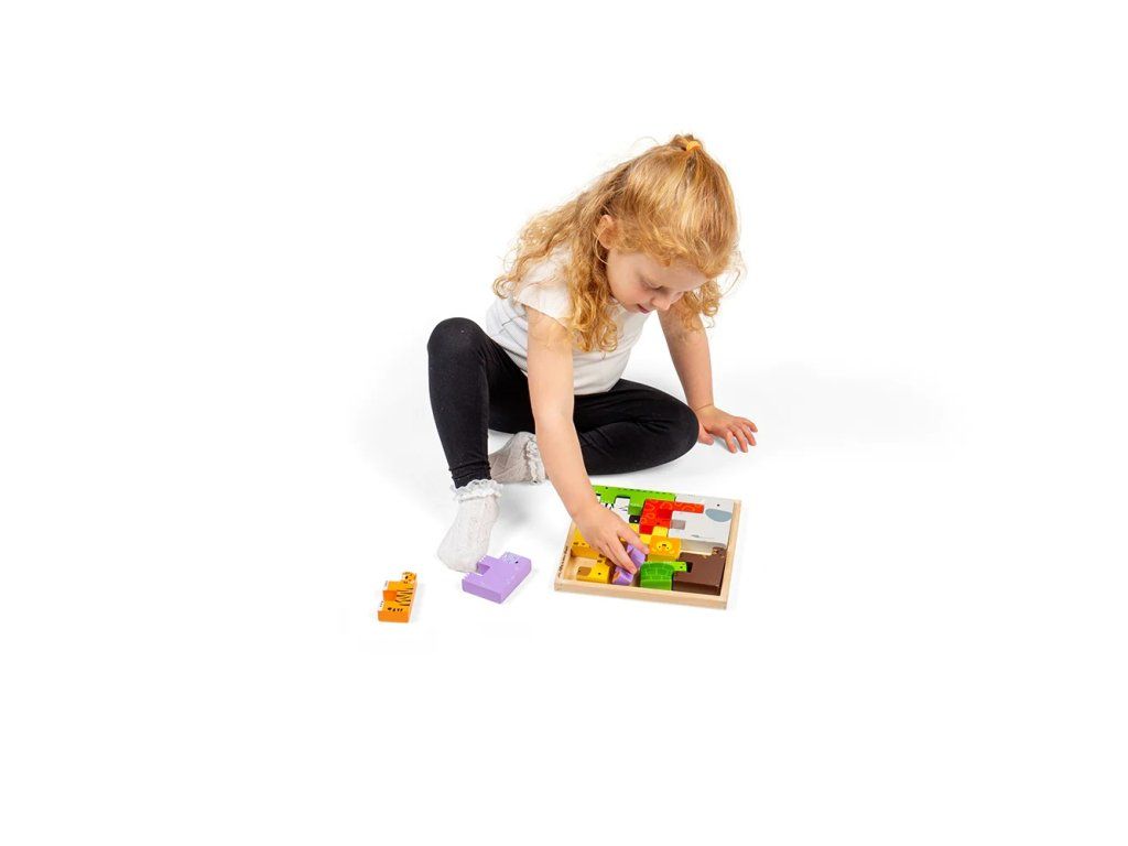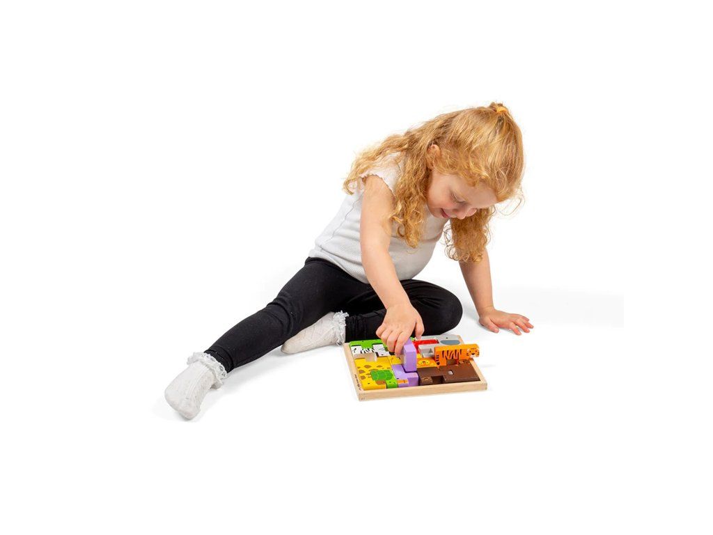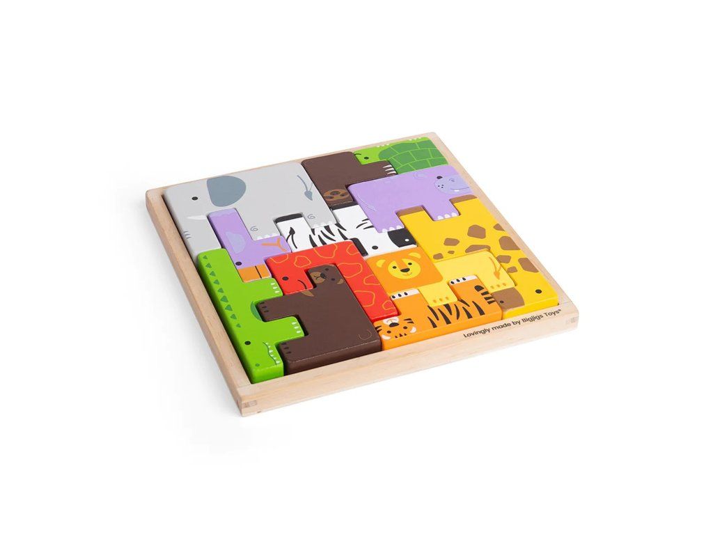 Bigjigs Toys Drevené kocky puzzle so zvieratkami safari