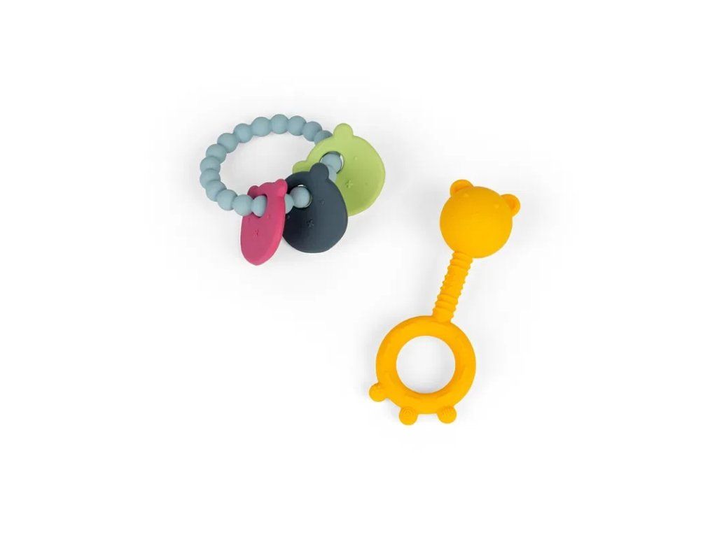 Bigjigs Toys Hrkálka a hryzačka 2 v 1 a hryzací krúžok Medvedík