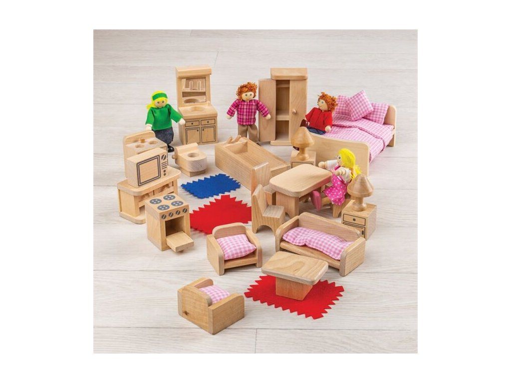 Bigjigs Toys Sada nábytku do domčeka a postavičiek rodiny