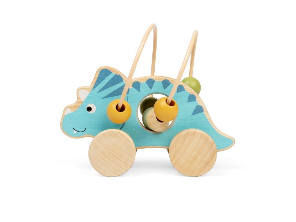 Bigjigs Toys Triceratops na kolieskach s korálkovým labyrintom