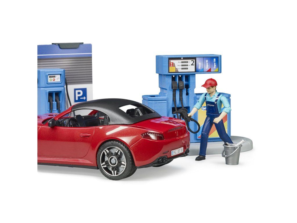 Bruder Čerpacia stanica s autom a 2 figúrkami