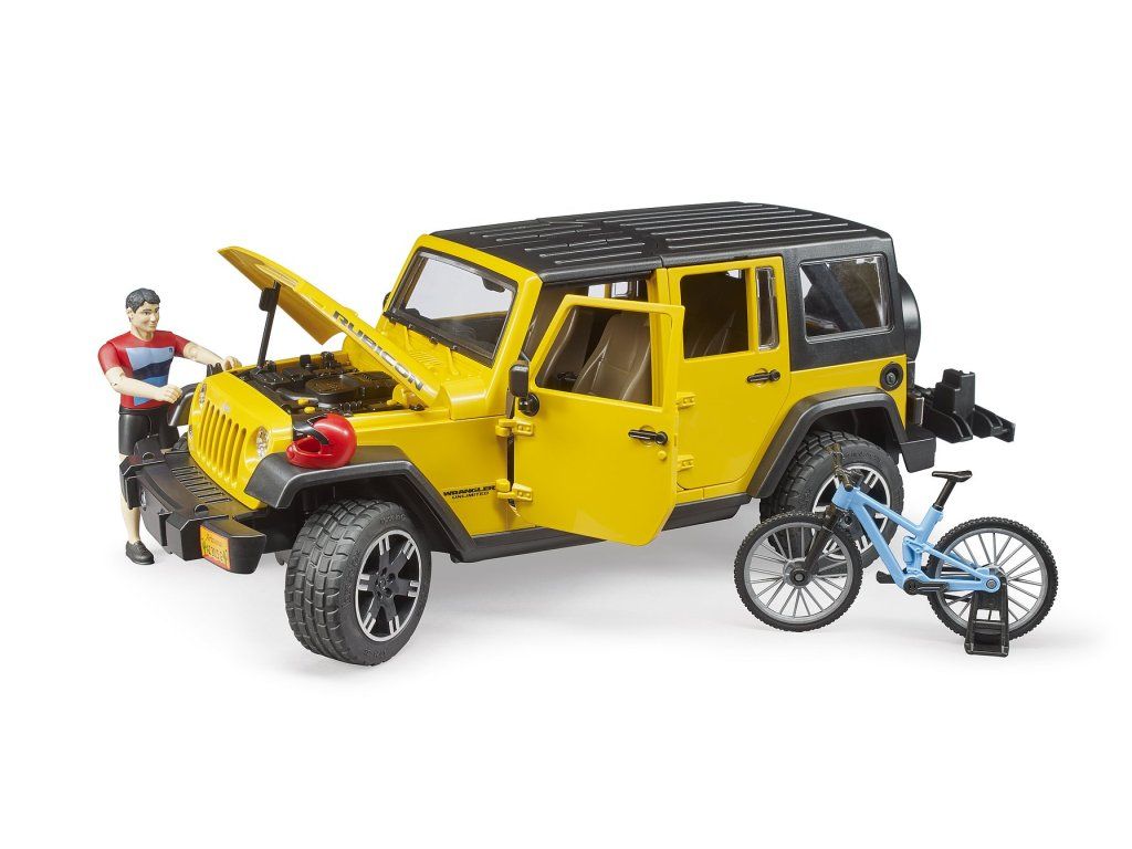 Bruder Jeep Wrangler Rubicon s cyklistom a okolo