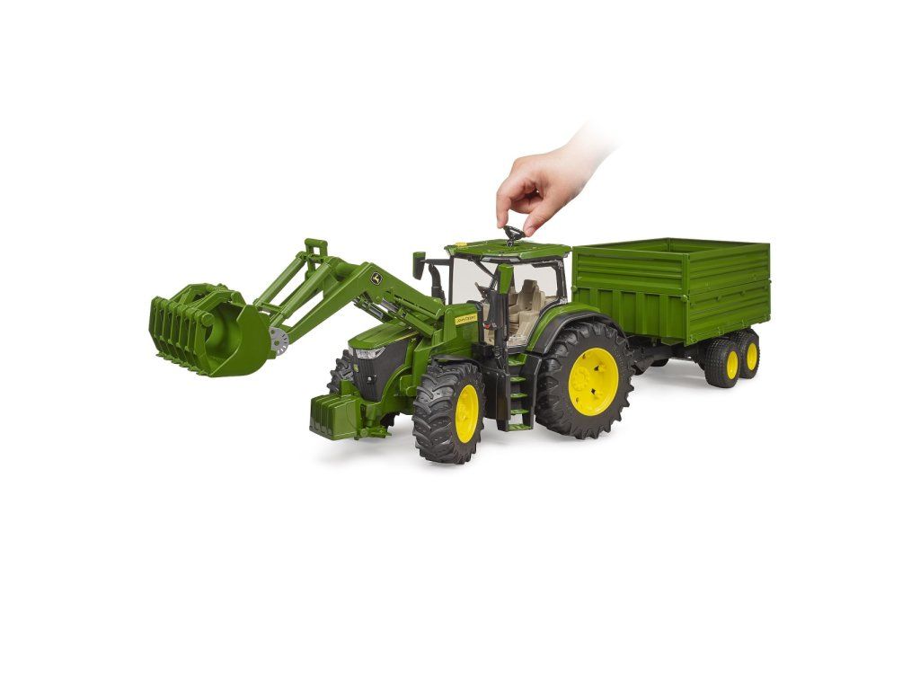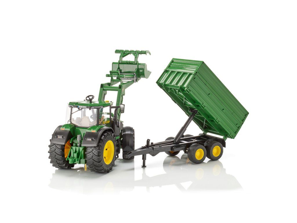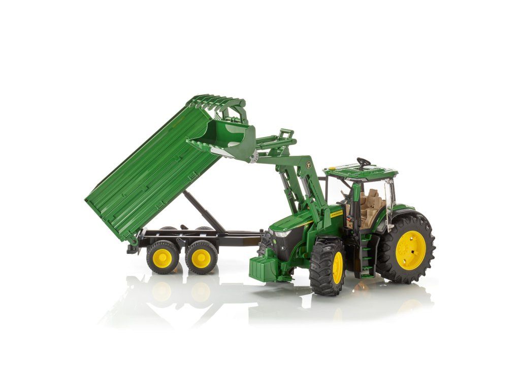 Bruder Traktor John Deere 7R 350 s čelným nakladačom a tandemovým prepravným prívesom