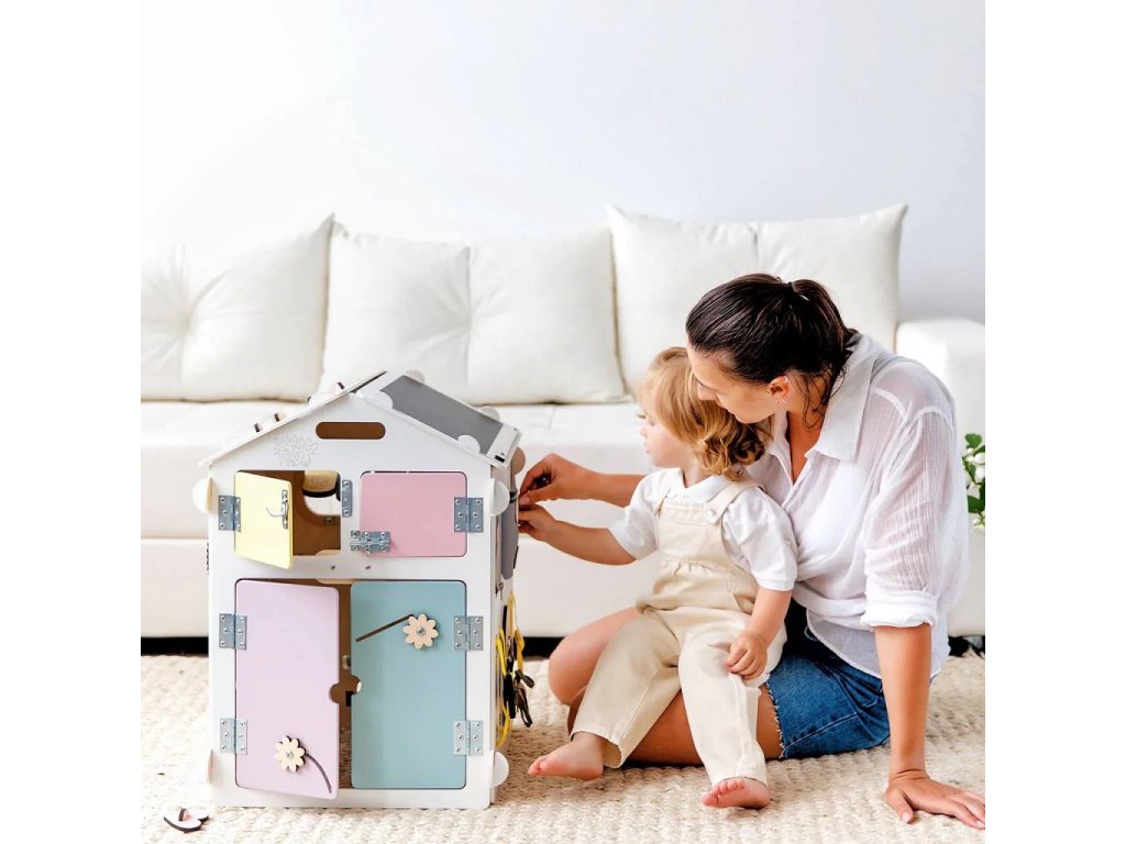 BusyKids Activity board Domček pastelovo biely