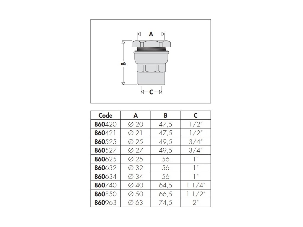 DECA - Šróbenie s vnútorným závitom, z mosadze, pre polyetylénové rúry, d 50 x 1 1/2" F