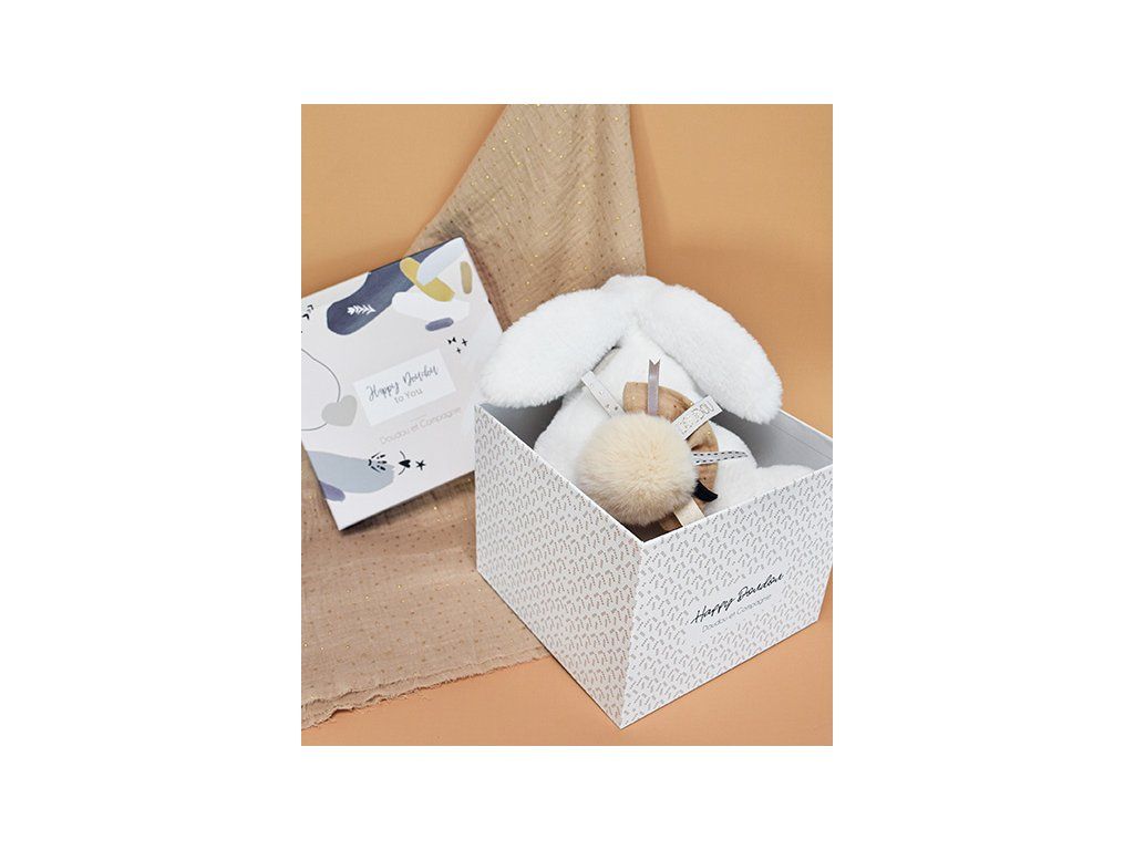 Doudou Darčeková sada - Plyšový zajačik s béžovým brmbolcom 25 cm