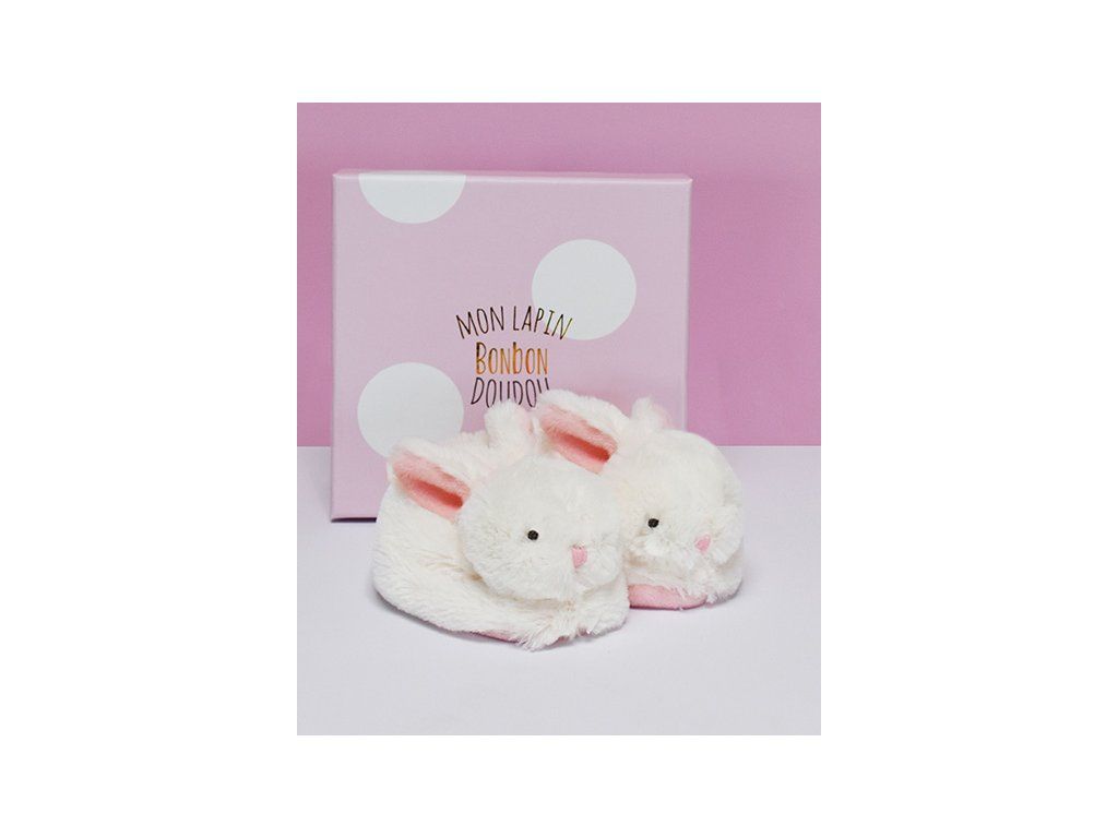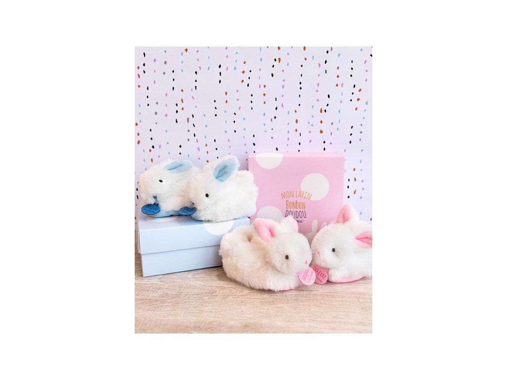 Doudou Darčeková sada - Sada topánočiek s hrkálkami králiček ružový 0-6 mesiacov
