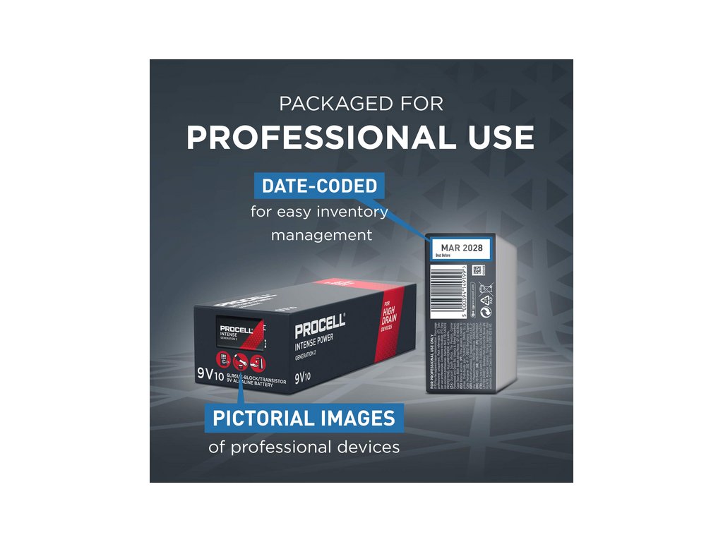 DURACELL PROCELL, Industrial Batérie, 9V, 6LR61