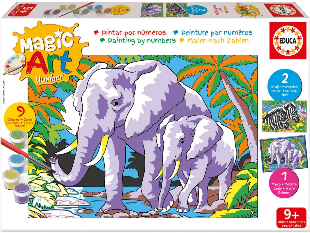 EDUCA Malování podle čísel: Sloni a Zebry
