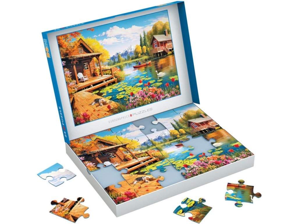 EUROGRAPHICS Puzzle Connecting Pieces: Chata u jezera 24 dílků