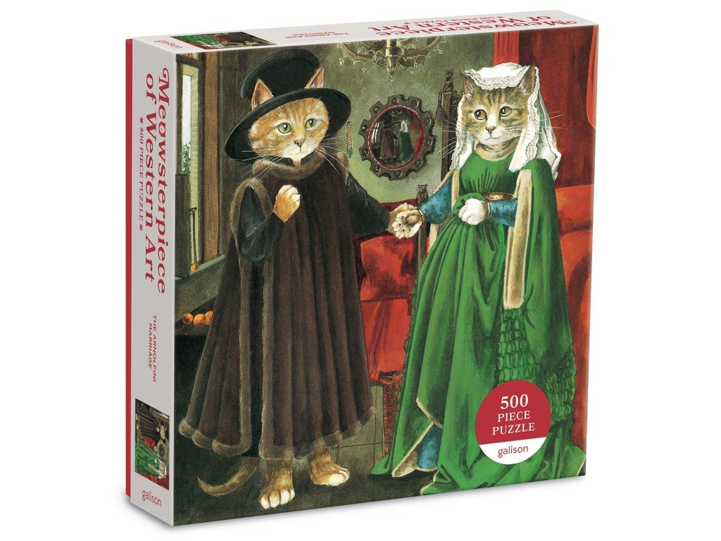 GALISON Čtvercové puzzle Meowsterpiece: Arnolfiniho manželství 500 dílků