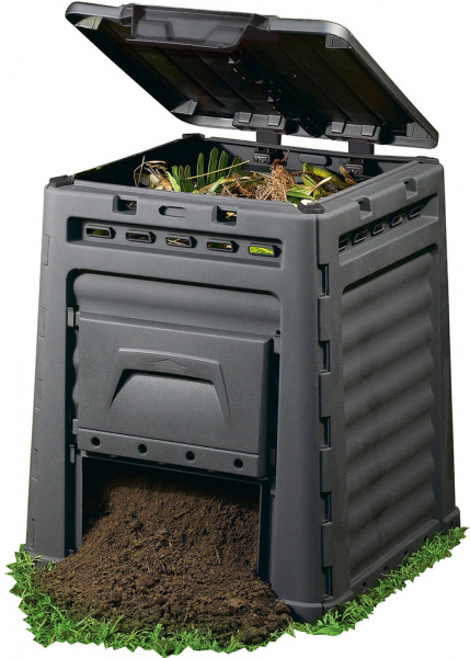Plastic composters are characterized by individual properties such as, for example, the material used for their production (HDPE, PE, PP), volume (290L - 2000L), weight (7 kg - 39 kg), shape (conical - oblong, cylindrical), number and distribution ventilation openings (there are dozens to hundreds of them), the opening system or extraction of finished compost (from two sides, from each side). Some composters also have superior features, such as UV stability, or internal ribbing of the walls.