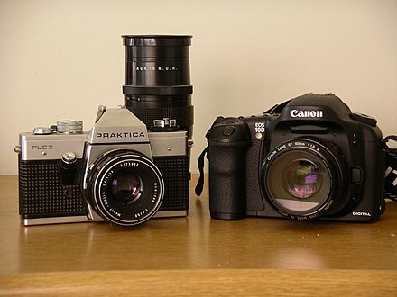 Nowadays, a single-lens reflex camera is usually understood as a single-lens reflex camera (in English SLR - Single-lens reflex), which has a folding mirror, and one lens is thus used both for exposure and for the viewfinder, in which the real image can always be seen. This allows the use of interchangeable lenses, filters and attachments, without impairing the ability to accurately preview the resulting photo.