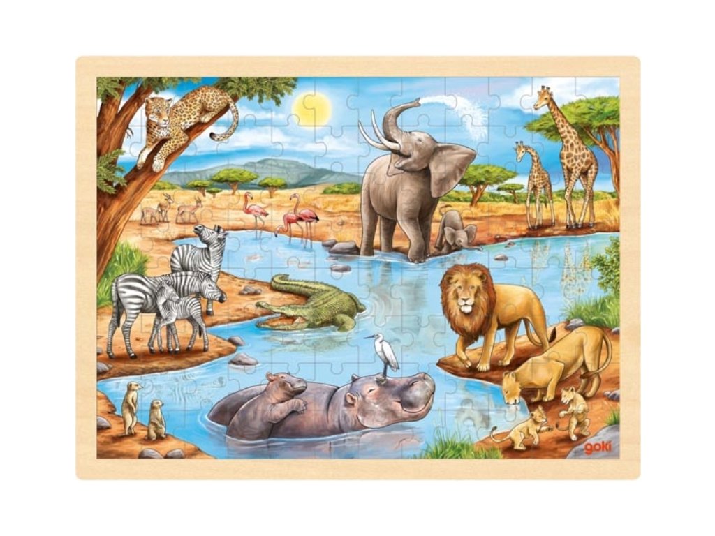 GOKI Dřevěné puzzle Africká savana 96 dílků