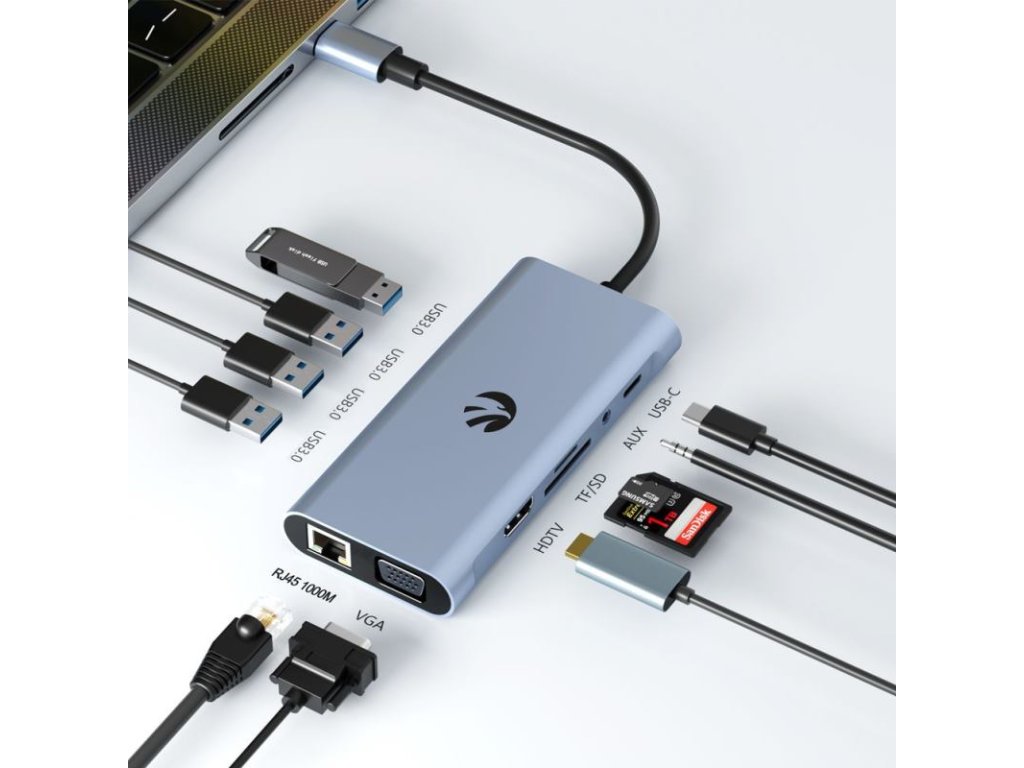 HAWK HUB 11v1 USB-C / USB-A / HDMI/VGA/SD/TF/RJ45