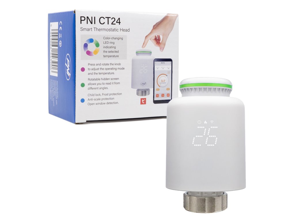 Inteligentná termostatická hlavica PNI CT24 pre radiátor, mobilná aplikácia Tuya Smart