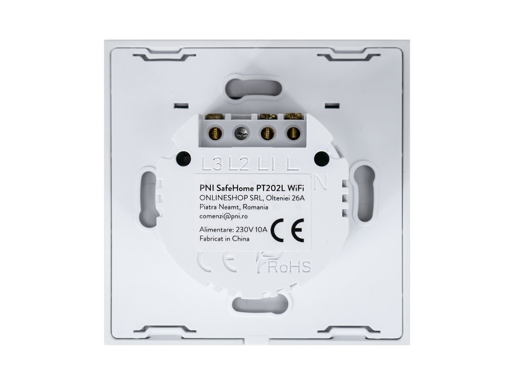 Inteligentný prepínač s PNI SafeHome PT202L WiFi touch, 10A, ovládanie pomocou aplikácie Tuya Smart, kompatibilný s Alexa a Google Assistant - Live Wire, bez nuly