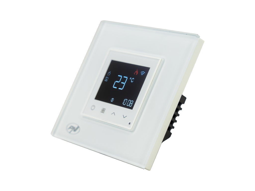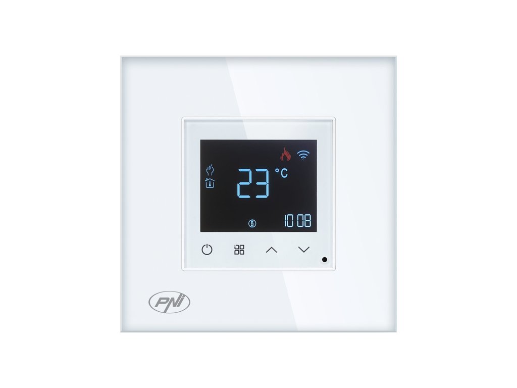 Inteligentný WiFi termostat PNI CT26W pre elektrické podlahové kúrenie alebo čerpaciu skupinu, podlahový senzor súčasťou balenia, zapustená montáž, ovládanie z aplikácie Tuya Smart, denné programovani