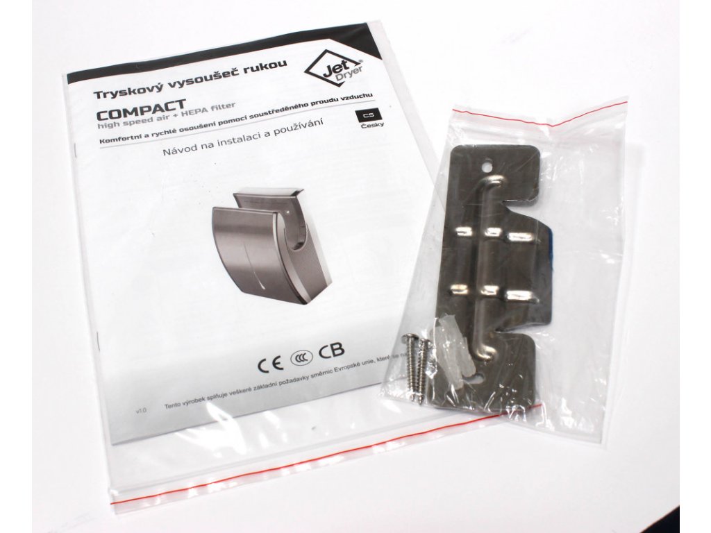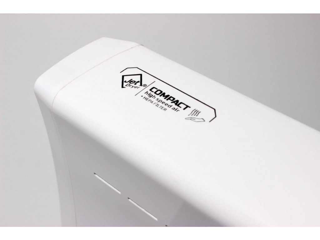 Jet Dryer COMPACT je malý tryskový sušič vhodný predovšetkým do umyvární limitovaných priestorov. V striebornom prevedení je predný panel sušiča z kovu, čo zvyšuje jeho odolnosť vo frekventovaných prevádzkach. Sušič rúk COMPACT je vybavený HEPA filtrom. Voda, ktorá sa pri vysúšanie neodparí, je zachytávaná v odkvapkávacieho nádobke.