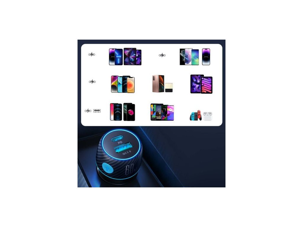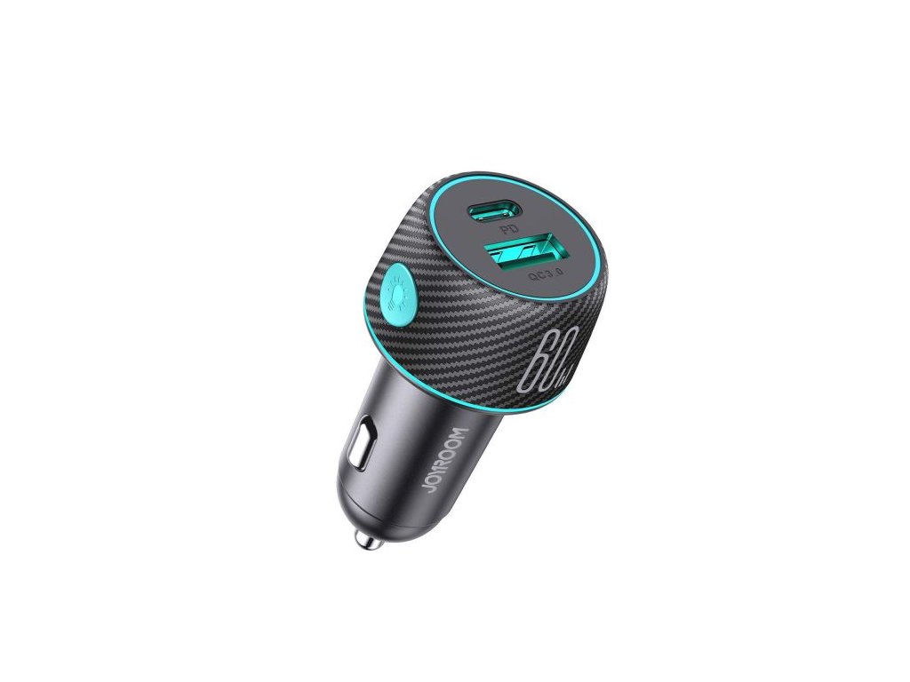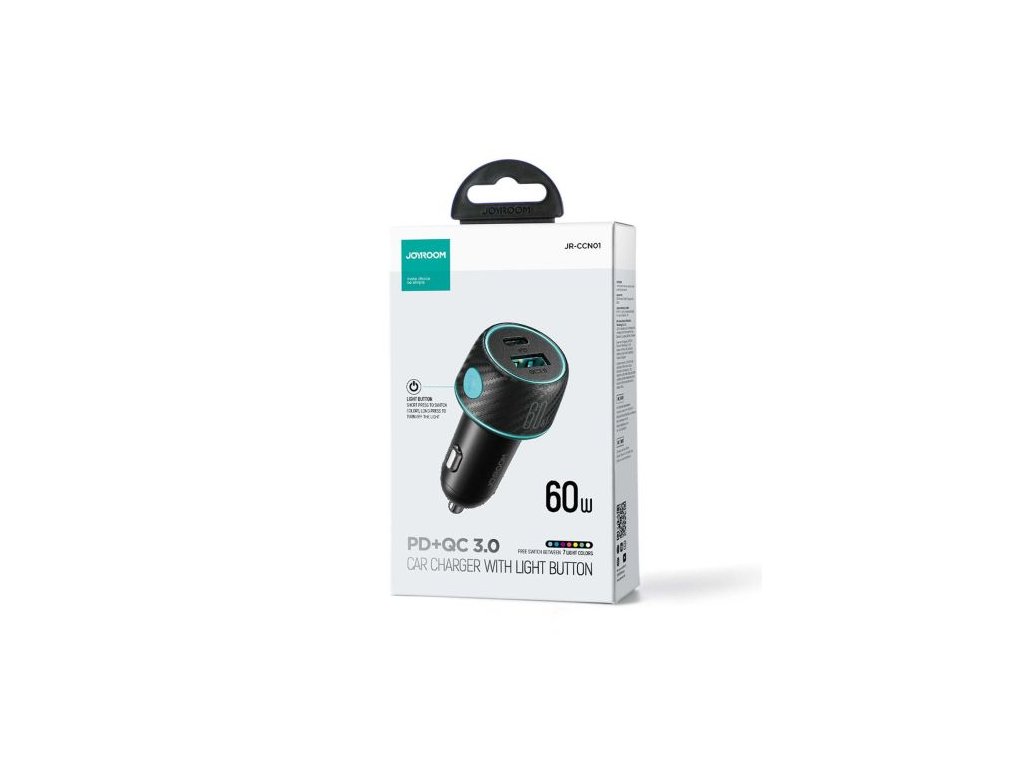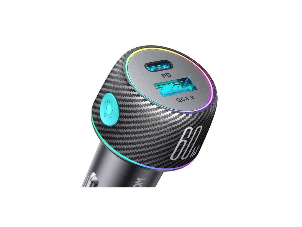 Joyroom Car Charger U+C, QC 3.0, PD, 60W, RGB, Black (JR-CCN01)