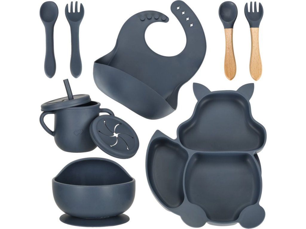KIK Dětská jídelní sada silikonová tmavě modrá
