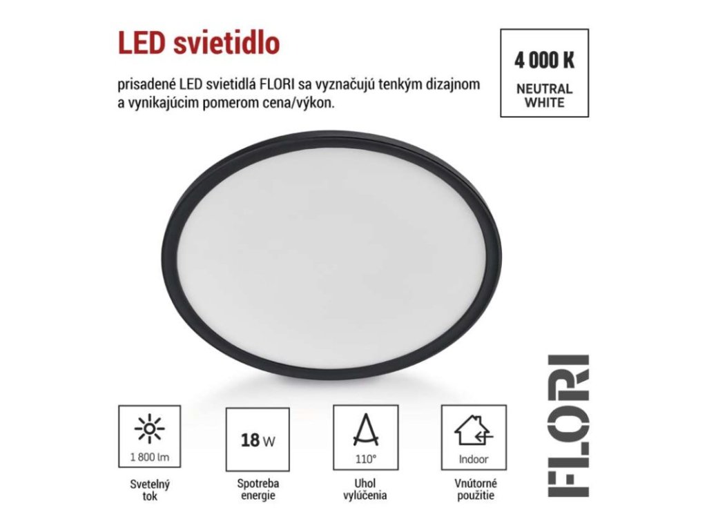 LED prisadené svietidlo FLORI okrúhle, čierné, 18W, neutrálna biela