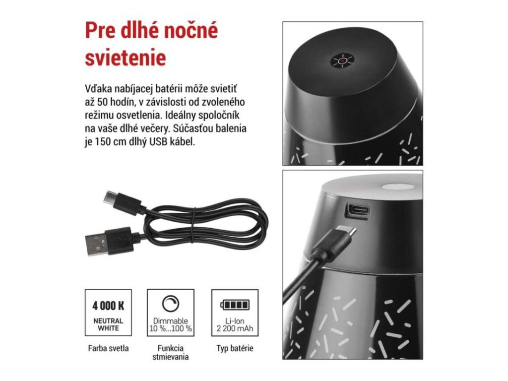 LED stolná lampa GRACE, dobíjacia