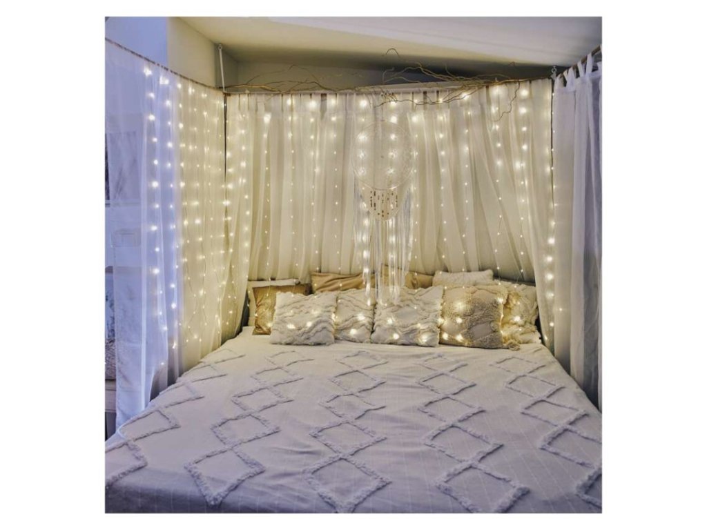 LED vianočná drop reťaz – záclona, 2,9x1,5 m, vonkajšia aj vnútorná, teplá biela, programy