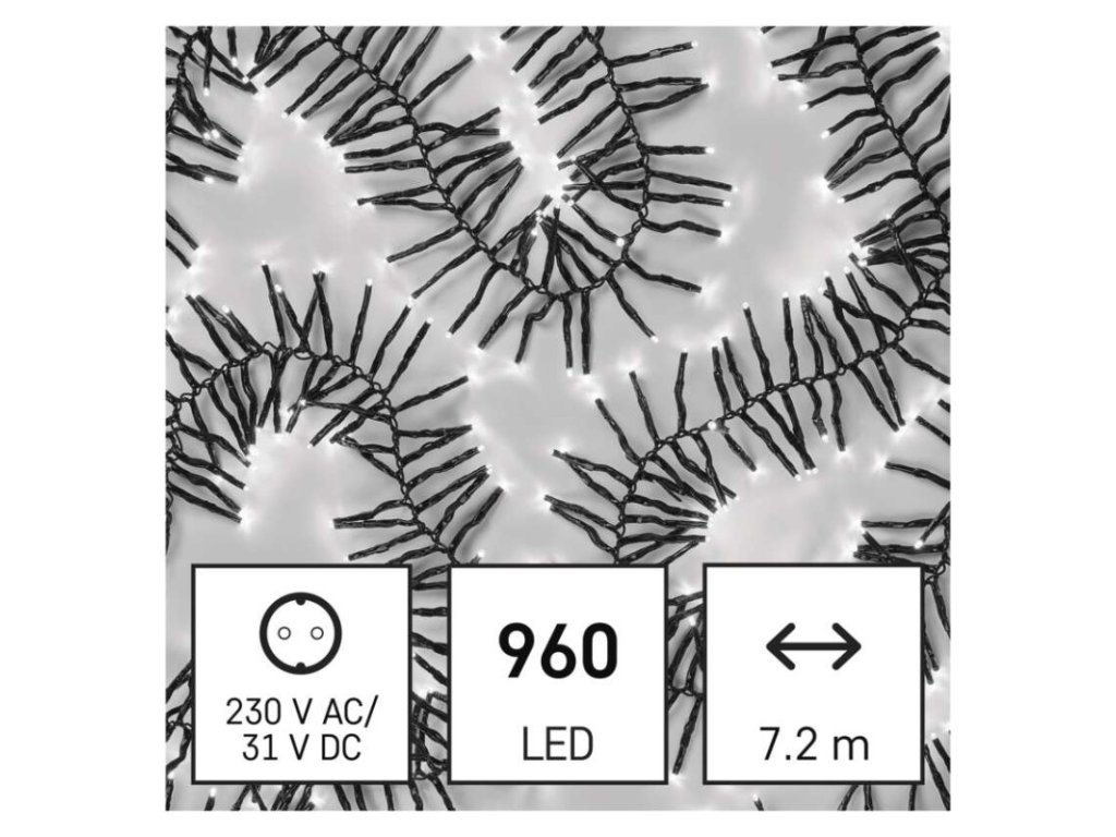 LED vianočná reťaz – ježko, 7,2 m, vonkajšia aj vnútorná, studená biela, programy