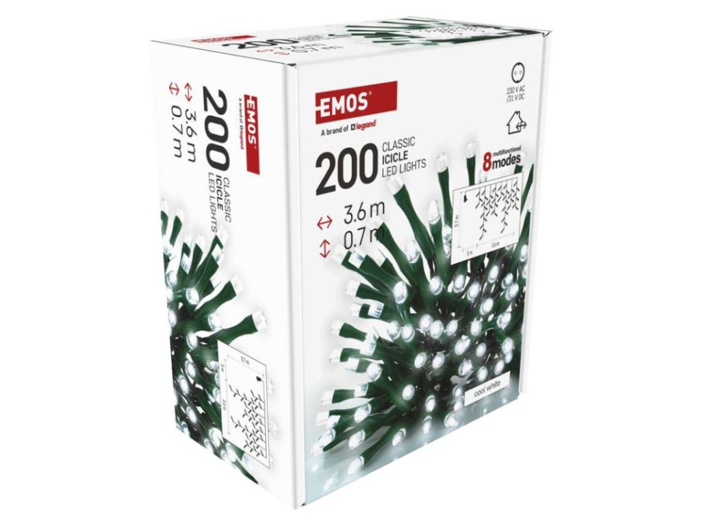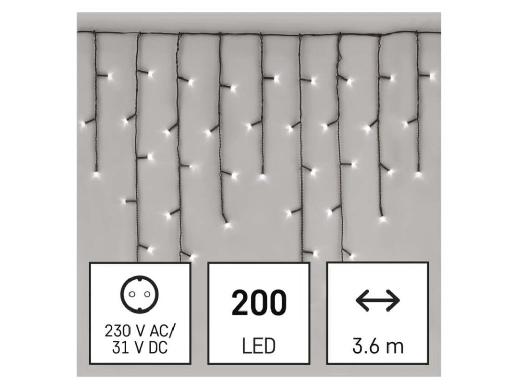 LED vianočné cencúle, 3,6 m, vonkajšie aj vnútorné, studená biela, programy