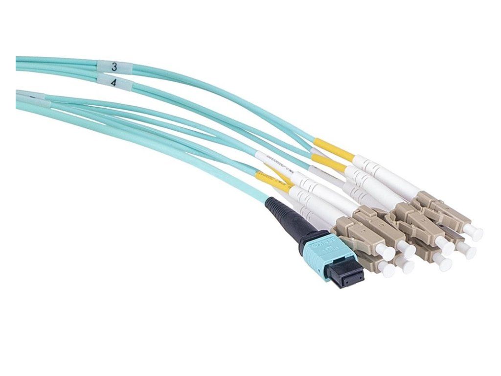Masterlan optický MPO patch cord, MPOupc female/4xLCupc duplex, MM, OM3, 8, Typ B, 2m