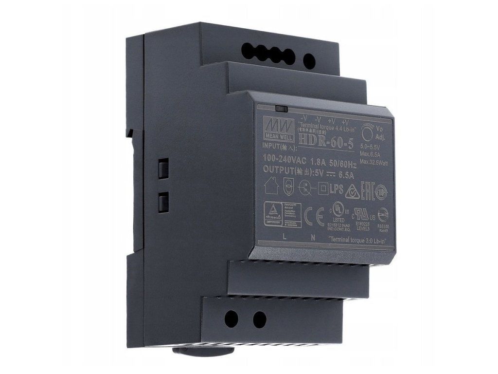 MEAN WELL HDR-60-5 Průmyslový napájecí spínaný zdroj 5V 32,5W na DIN