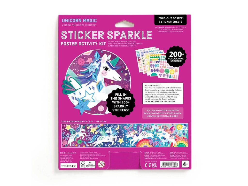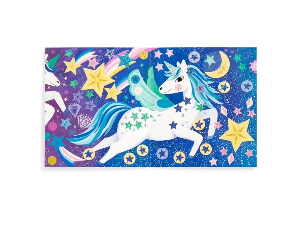 Mudpuppy Súprava trblietavých samolepiek so scénou Kúzelní jednorožci