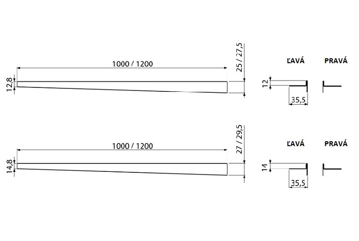 Nerezová lišta pre spádovanú podlahu, výška lemu 12 mm, dĺžka 1200 mm, ľavá