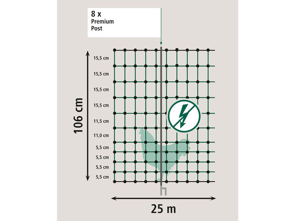 Nevodivá sieť pre hydinu KERBL 292419 PREMIUM, 106 cm x 25 m / 2 hroty