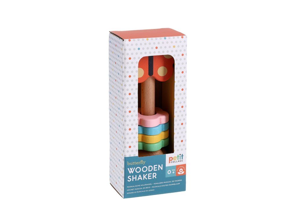 Petit Collage Dřevěné chrastítko Motýl