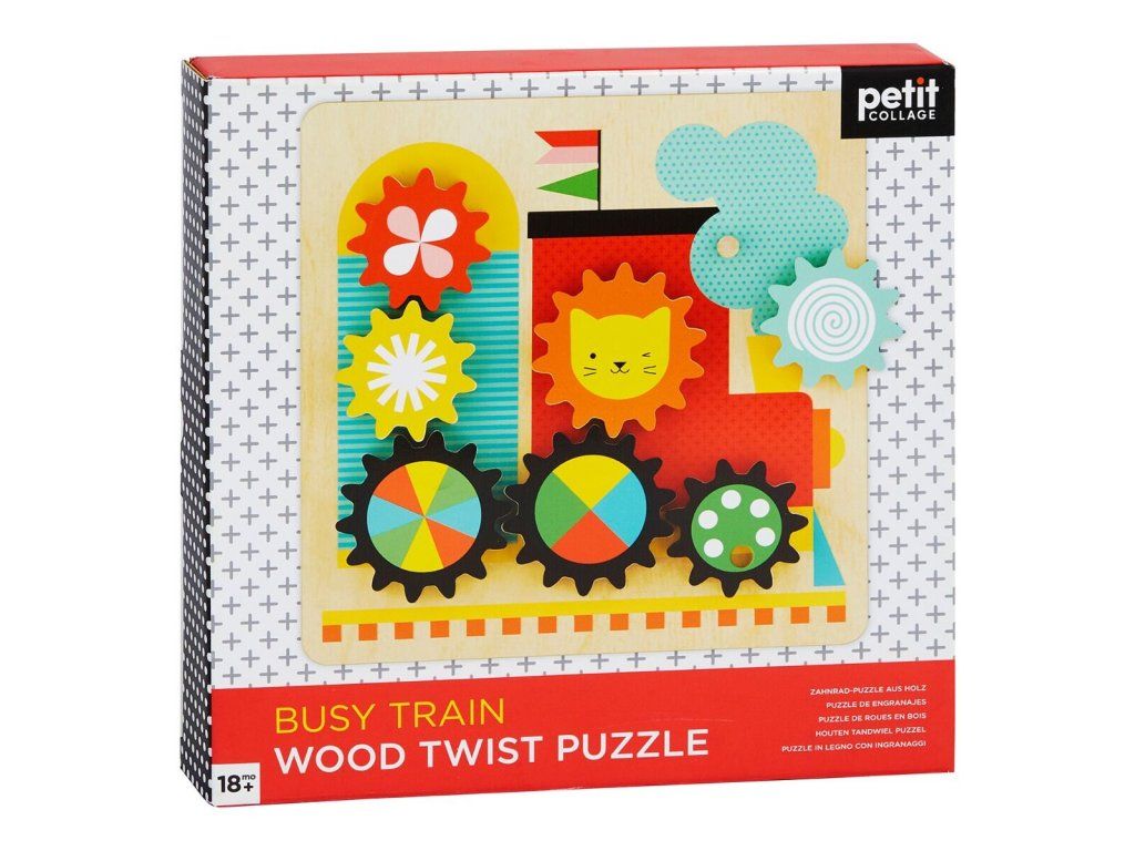 Petit Collage Puzzle ozubené kolieska vláčik