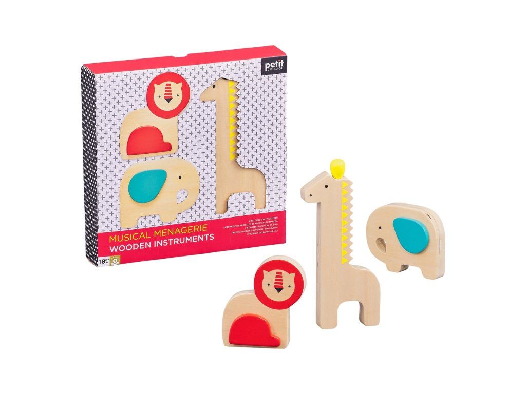 Petit Collage Sada Hudobný zverinec s drevenými nástrojmi 3ks