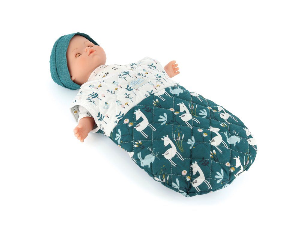 Petitcollin Spací vak zeleno-biely (pre bábiku 36-40 cm)