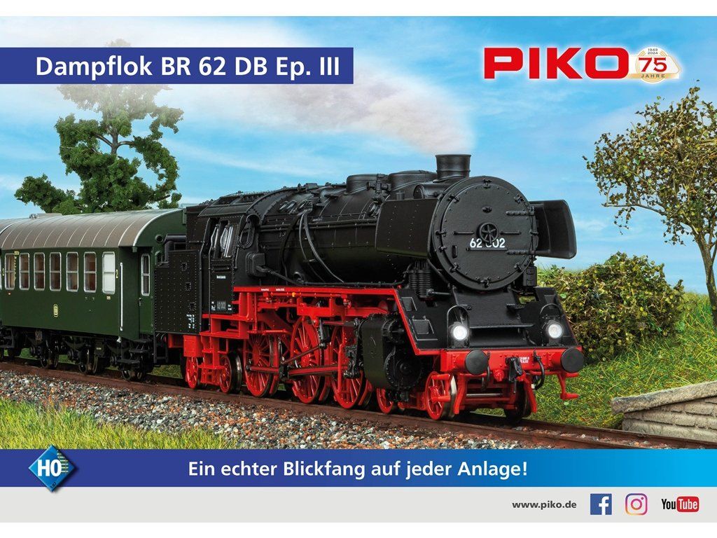 Piko Parná lokomotíva BR 62 DB III vrátane zvukového dekodéra a parného generátora, digitálna - 5070