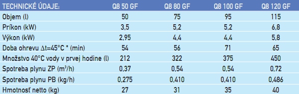Plynové ohrievače vody QUADRIGA GF sú určené na zavesenia s odvodom spalín do komína max. vzdialenosti 3 m od ohrievača.Predstavujú najlacnejšiu verziu zásobníkového zariadenia na ohrev vody. Inštalujú sa v domácnosiach, penziónoch, reštauráciách, kaderníctvach. Prípojky vody a plynu sa nachádzajú v spodnej zadnej časti ohrievača, čo uľahčuje montáž a nie je nasrušený celkový dizajn ohrievača.
