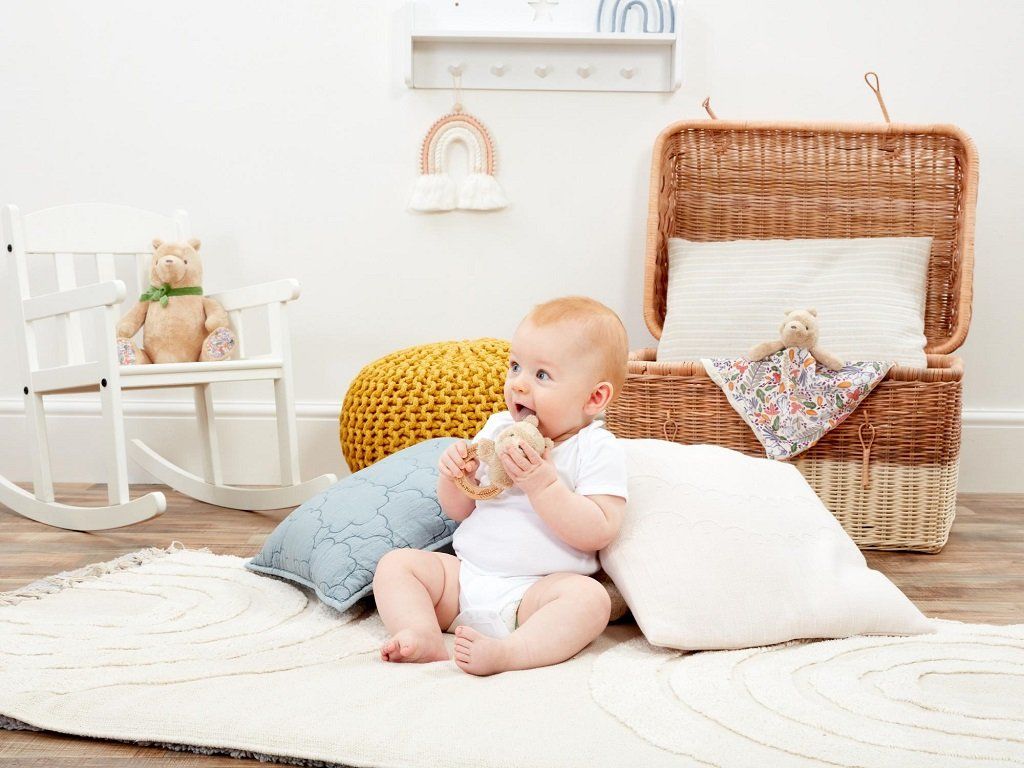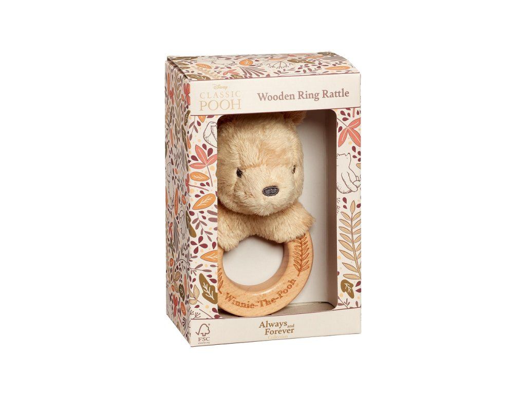 Rainbow Drevená/plyšová hrkálka Macko Pú